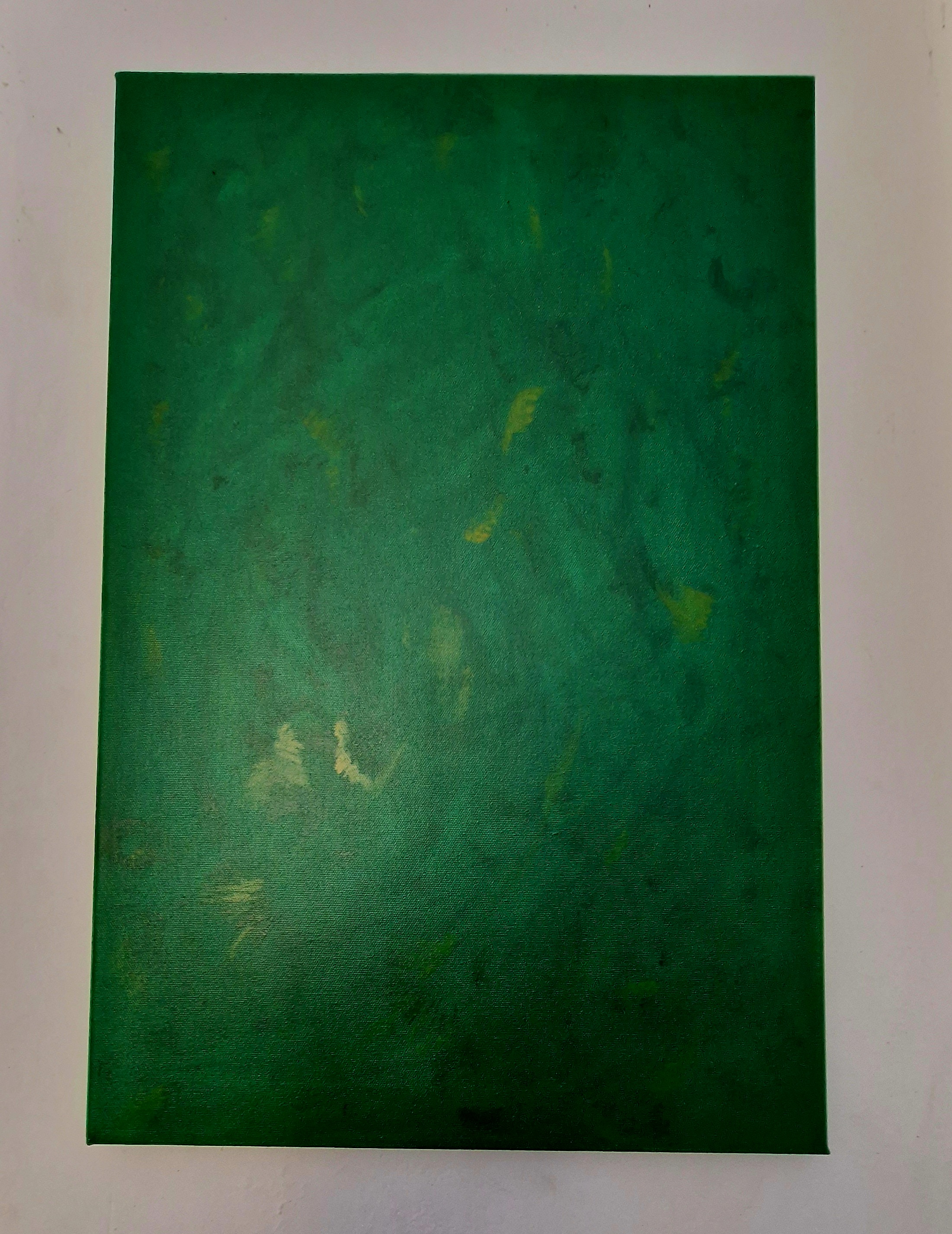 Obra traslúcida en la que se aprecian las capas y pincelas, de estados del pimiento, enforma de “naturaleza verde”.