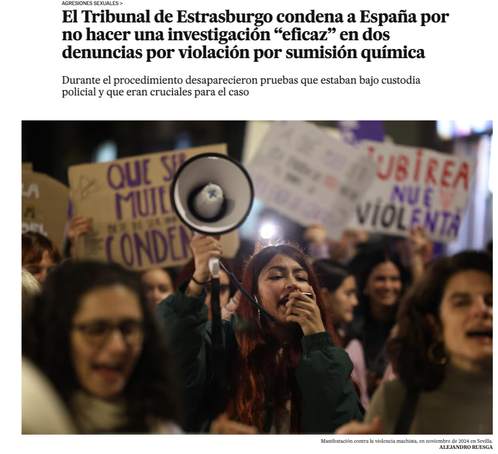 Enlace directo: https://elpais.com/sociedad/2025-10-23/el-tribunal-de-estrasburgo-condena-a-espana-por-no-hacer-una-investigacion-eficaz-en-dos-denuncias-por-violacion-por-sumision-quimica.html