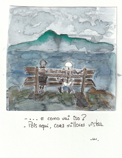 En Galicia hay una tradición muy fuerte de dibujo cercano a la gente. Castelao llenó periódicos, libros y postales de figuras que hablaban de la vida diaria, con humor, ternura y mala leche cuando hacía falta. Salvando las distancias, mis formatos entran en esa misma familia: imágenes pequeñas que caben en la mano, viajan en sobres, se regalan, se guardan en una caja o en una estantería. Acompañan un momento y se queda en la memoria de quien la recibe.